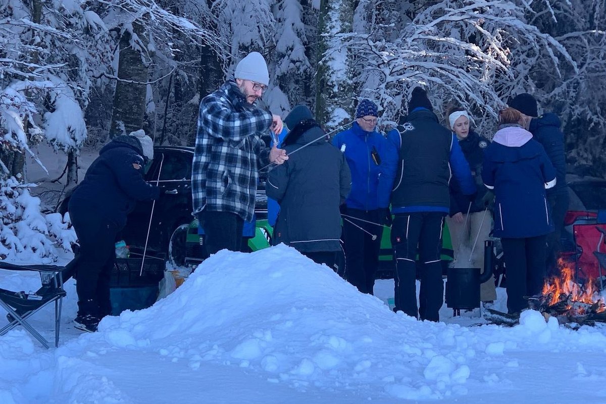 Am Mittag genossen wir mit atemberaubender Aussicht ein Fondue und wärmten uns am Feuer. Interessante Gespräche, beginnend bei Krampfadern bis hin zu morphischen Feldern, aber natürlich auch viel Sani-Fachsimpelei begleiteten das Mittagessen.